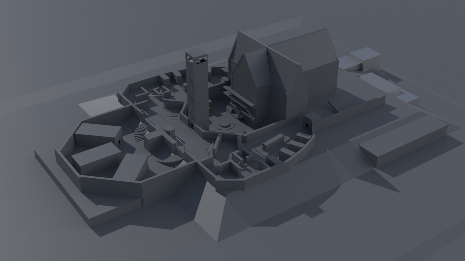 The concepts are based on this layout to establish the architectural style as well explore some of the possible lighting scenarios I'd like to see in the level.